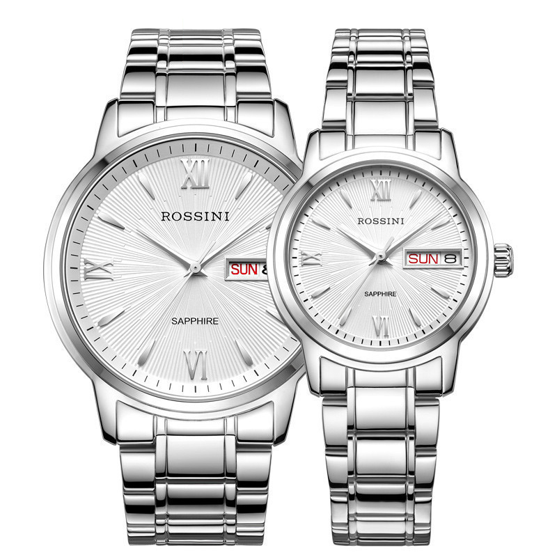 罗西尼(Rossini)手表金属不锈钢带防水双历 时尚雅尊商务系列 石英表 男 男士 女士 情侣表 手表5723 男表间金5723T01C